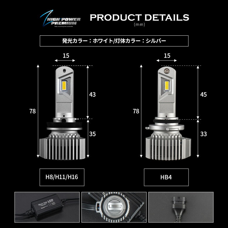 Zハイパワープレミアムフォグ 形状 商品番号 H8/H11/H16、HB4 li02007 輝度 カラー ホワイト:6400LM(左右) イエロー:7200LM(左右) 発光カラー:ホワイト/灯体カラー:シルバー 発光カラー:イエロー/灯体カラー:ゴールド 材質 セット内容 LED フォグランプ×2、コントローラー×2 タイラップ、取扱説明書 保証期間 【1年保証】・・・詳しくは商品に同封してあります商品保証書もしくはご利用ガイドをご確認ください。